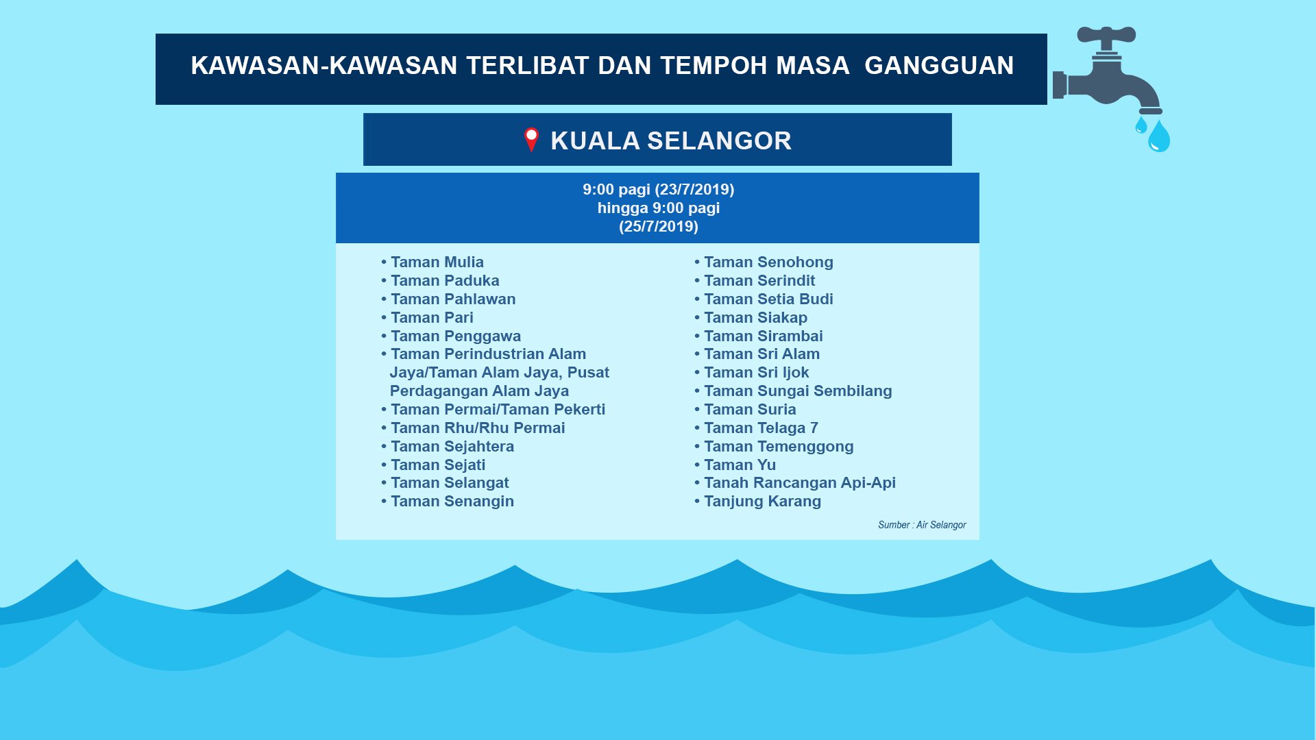 Uzivatel Berita Rtm Na Twitteru 22 Julai Makluman Kawasan Kawasan Terlibat Gangguan Bekalan Air Dan Temboh Masa Gangguan Libatkan Kawasan Di Hulu Selangor Kuala Langat Dan Kuala Selangor Beritartm Selangor Hululangat Airselangor Https T